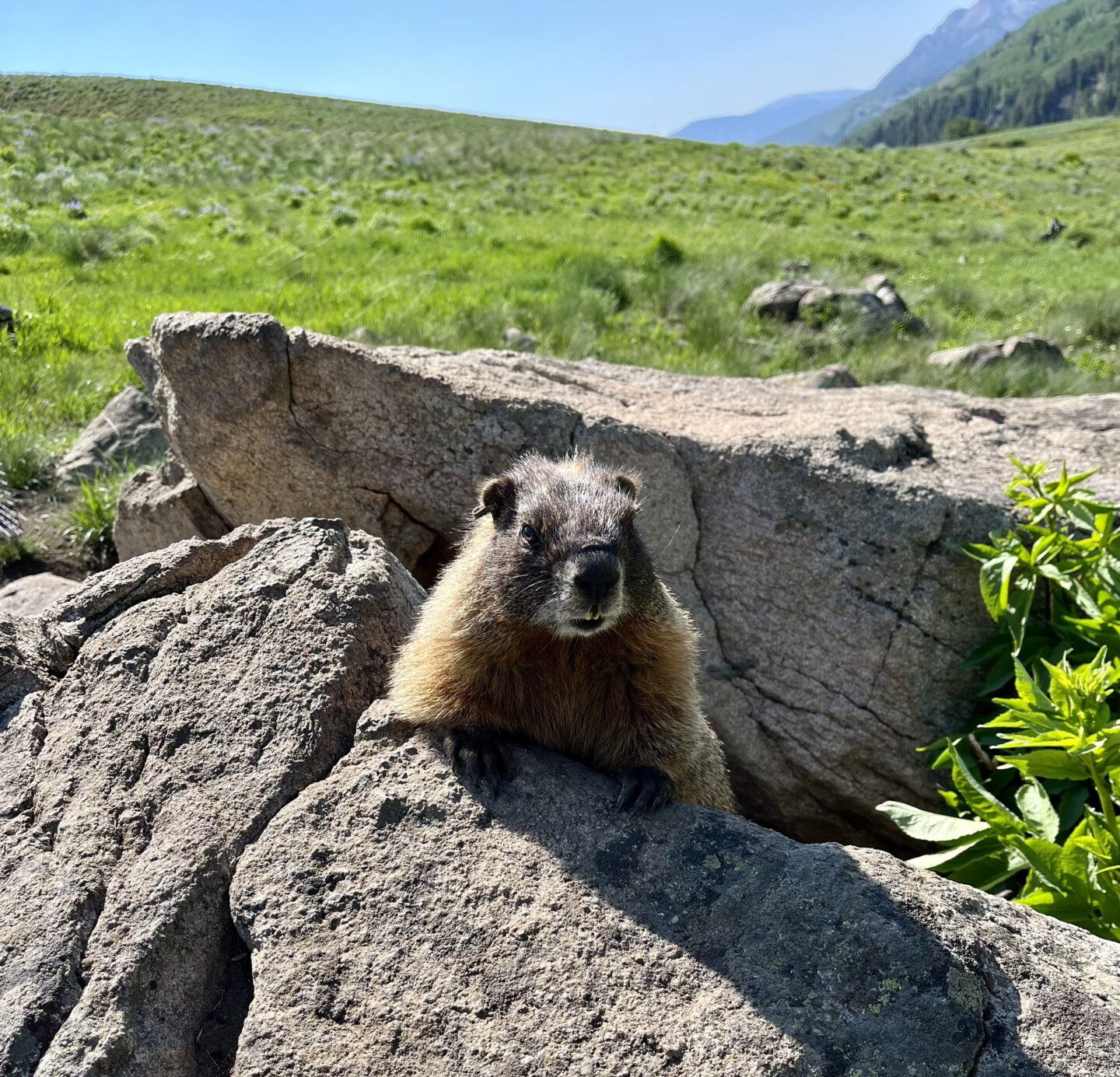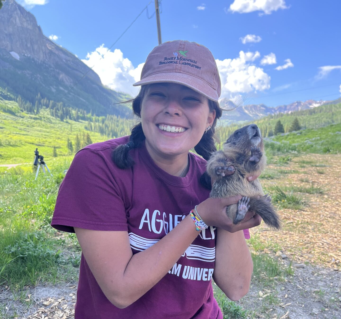 As the sun glinted off the East River, I sat perched on one of the many rocks strewn across the riverside, patiently awaiting the arrival of a marmot in my scope. Suddenly, one appeared, scurrying over the grassy knolls that made up my field site. She scampered quickly over each hill as I scrambled to keep her in the sight of my scope. It was there, just before I watched her hastily enter a burrow, that I spotted what I had been hoping to see all morning: a marmot pup. With her babies clutched gently in her mouth, the marmot mom dutifully carried her recently born pups from an old burrow to a new one. Something had compelled her to choose a new place to raise her pups for the summer, and I watched, transfixed, as she returned again and again to retrieve pup after pup. After nine trips back and forth, she had successfully settled all her pups into their new home. I reported the exciting news to my field crew and resumed watching the other marmots as they foraged and moved about the field site.